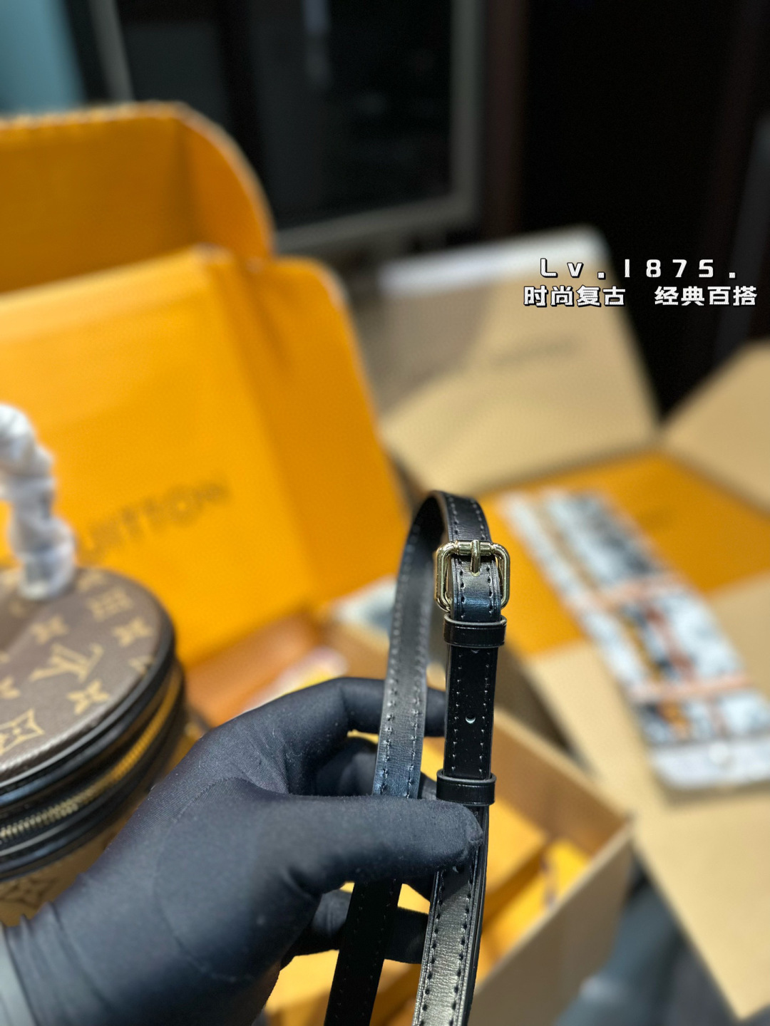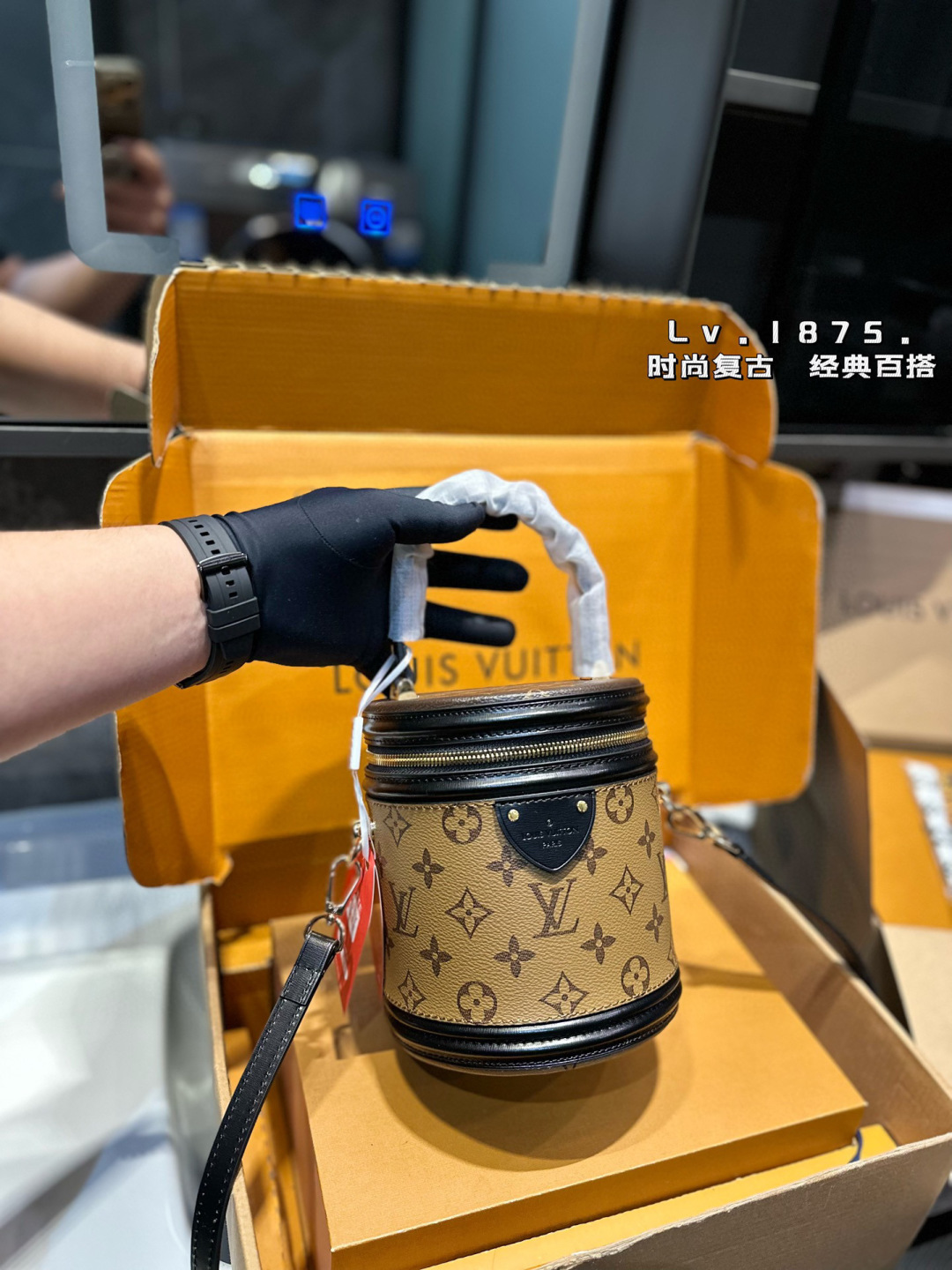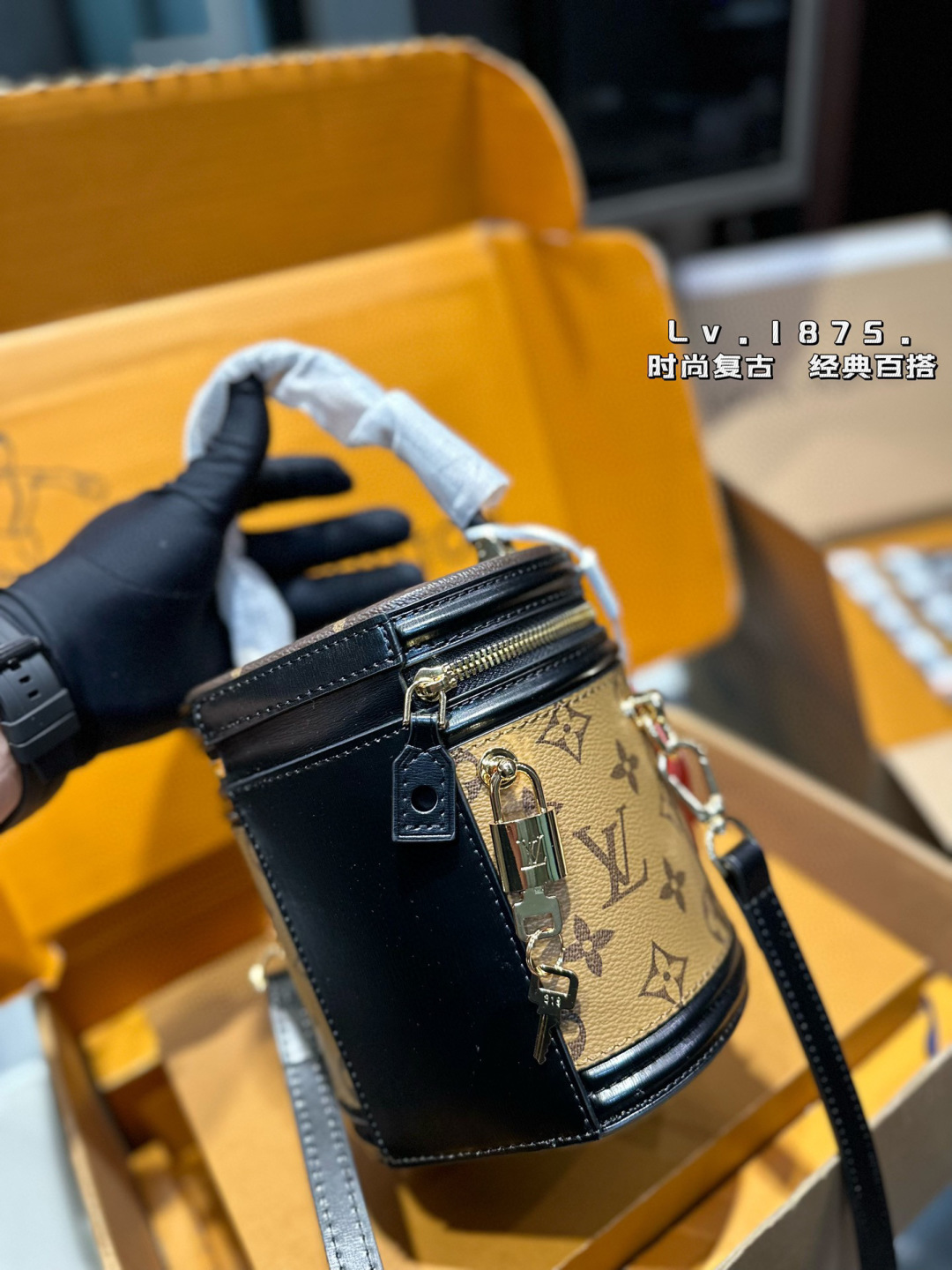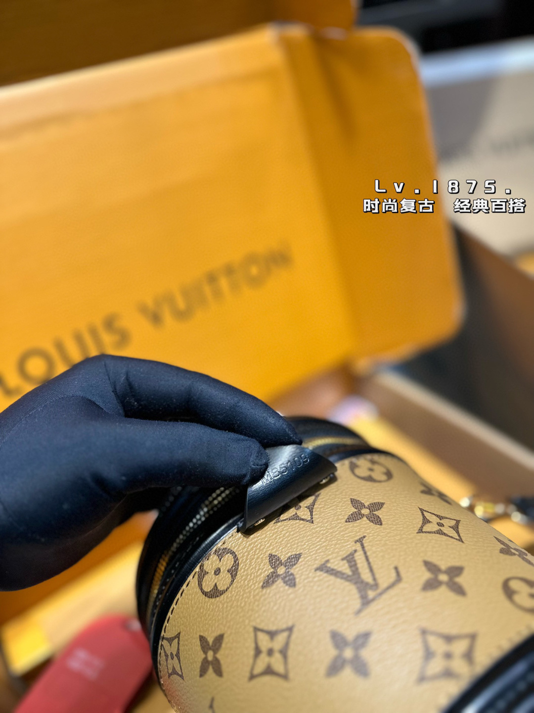 Featuring the historical shape of the LV Cannes beauty case, designer Nicolas Ghesquière revives a long-standing classic with the Cannes handbag. Petite in size and presented in a mix of Monogram and Monogram reverse coated canvas, the elegant piece reanimates a traditional silhouette steeped in Louis Vuitton heritage. A removable leather strap and top handle provide a range of carrying options.