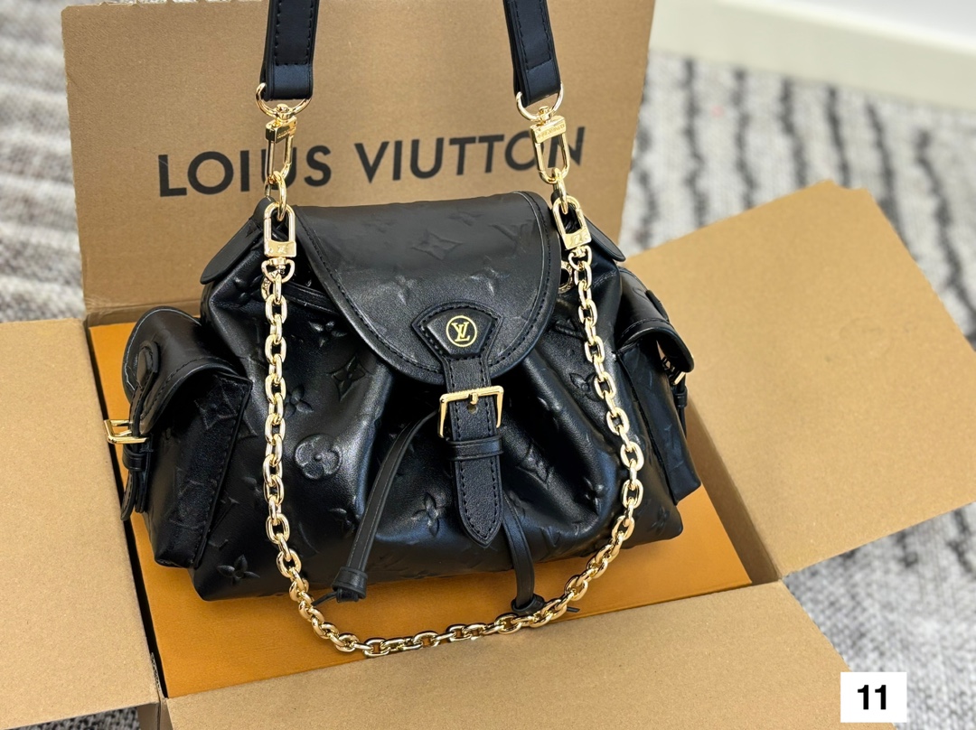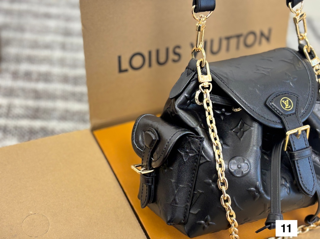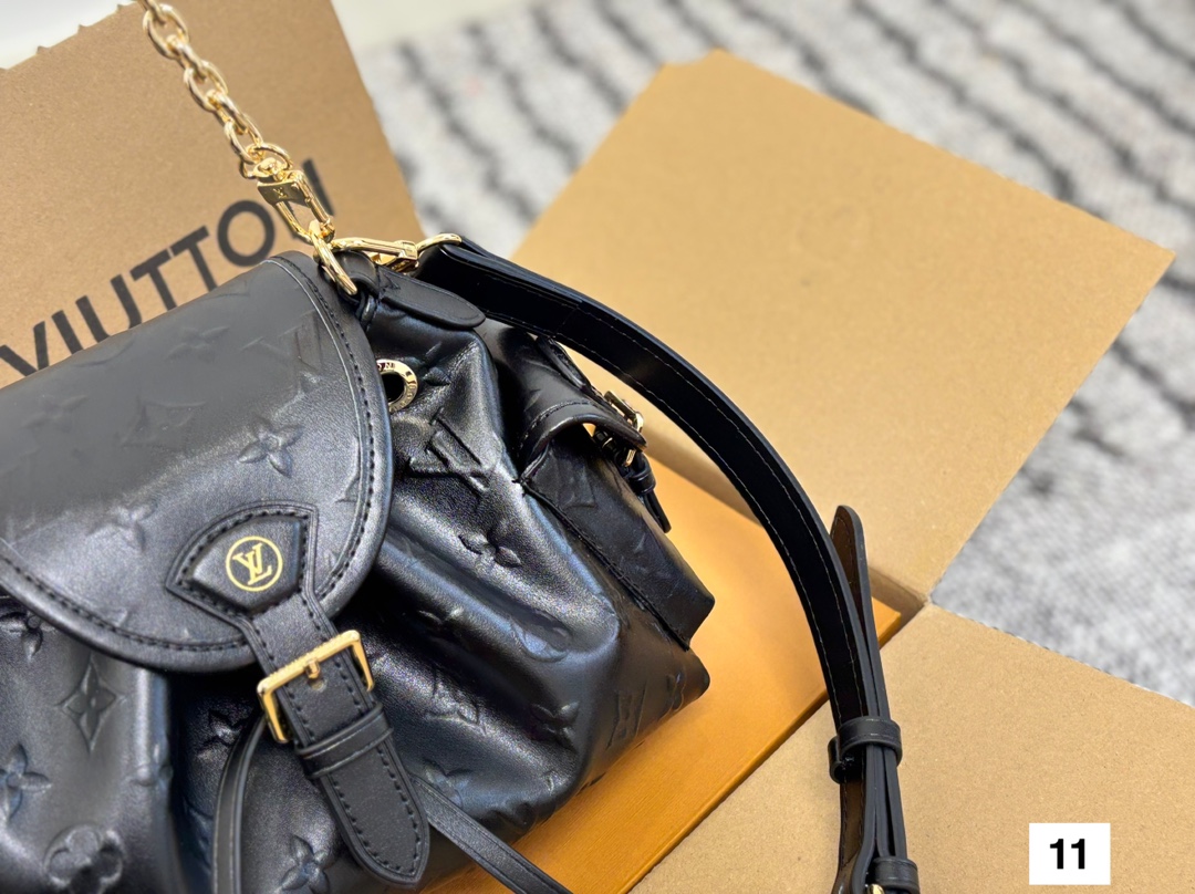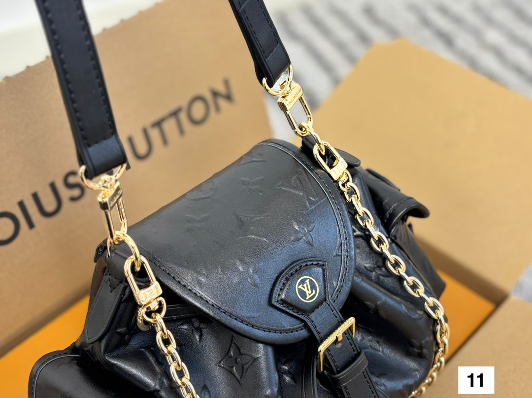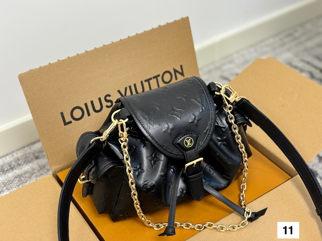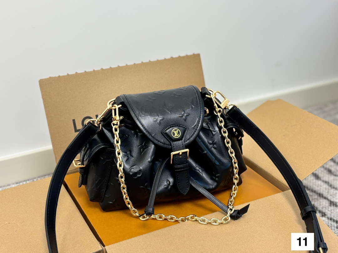 Meet the Odyssée handbag, a key shape from the Pre-Fall 2025 collection. Inspired by the Excursion backpack from Cruise 2024, it encapsulates the House’s travel DNA and is designed for everyday adventures. The shoulder style is crafted from calfskin patterned with the Minigram Bold signature, complete with decorative buckles and a removable chain. Use the side pockets to keep keys or a lipstick close at hand.