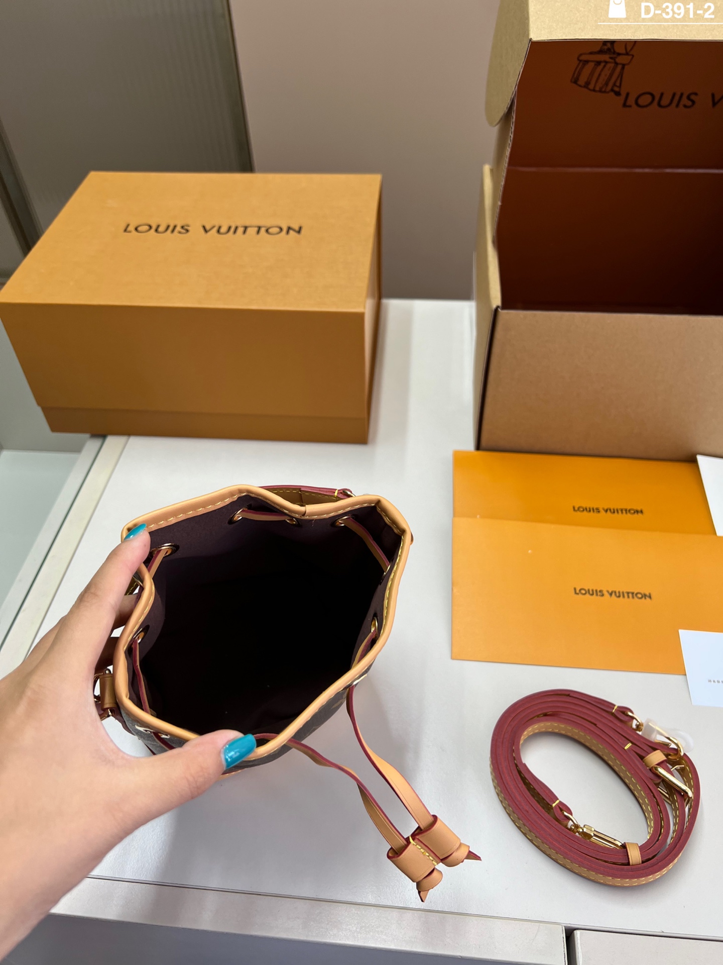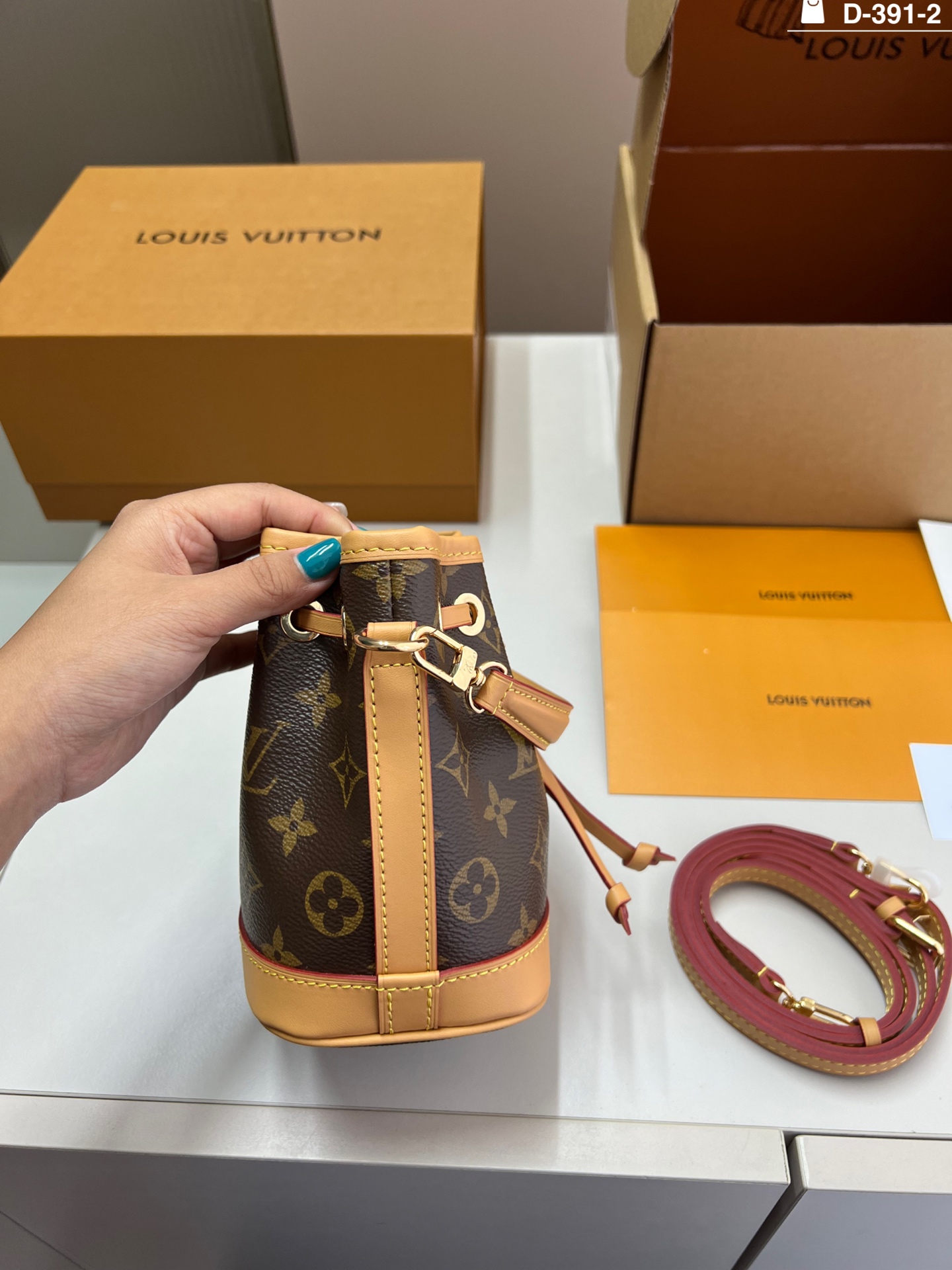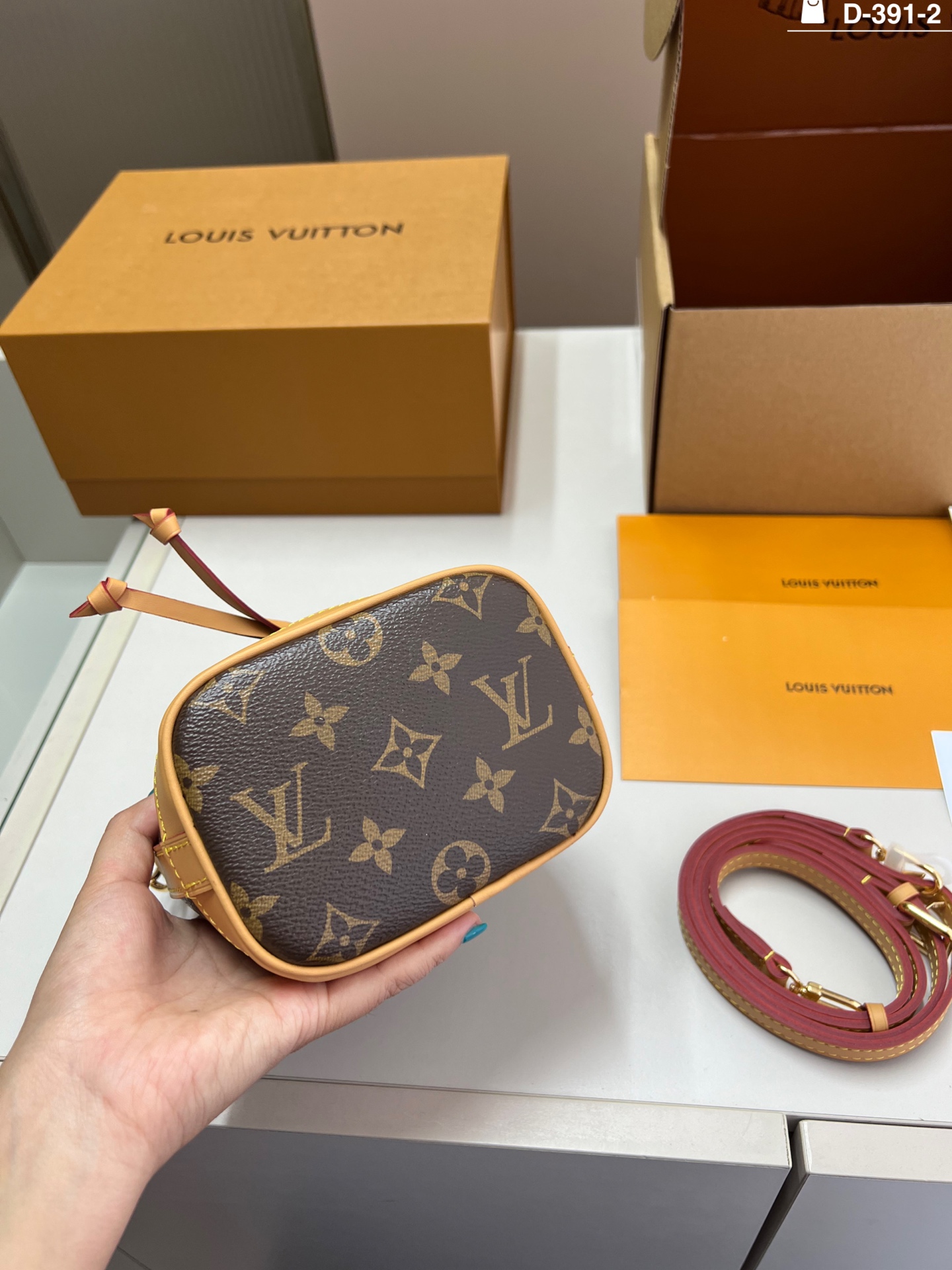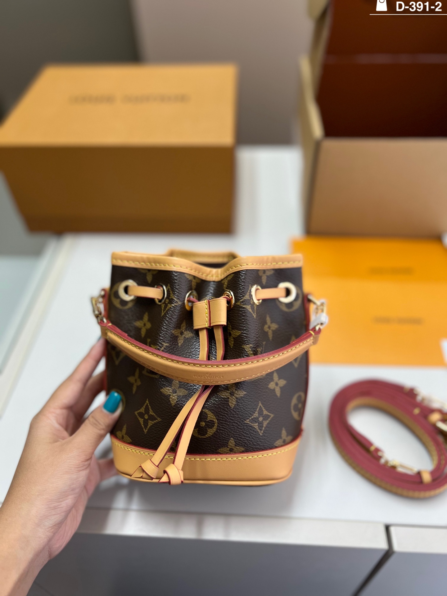 The Nano Noé is a miniature version of the iconic Noé bag, created in 1932. Crafted from Monogram canvas with trim in natural cowhide leather, this tiny Nano Noé combines heritage with modern functionality. Its removable handle and removable, adjustable strap offer multiple carry options, while it is spacious enough to hold essentials including keys, a card holder and a smartphone.