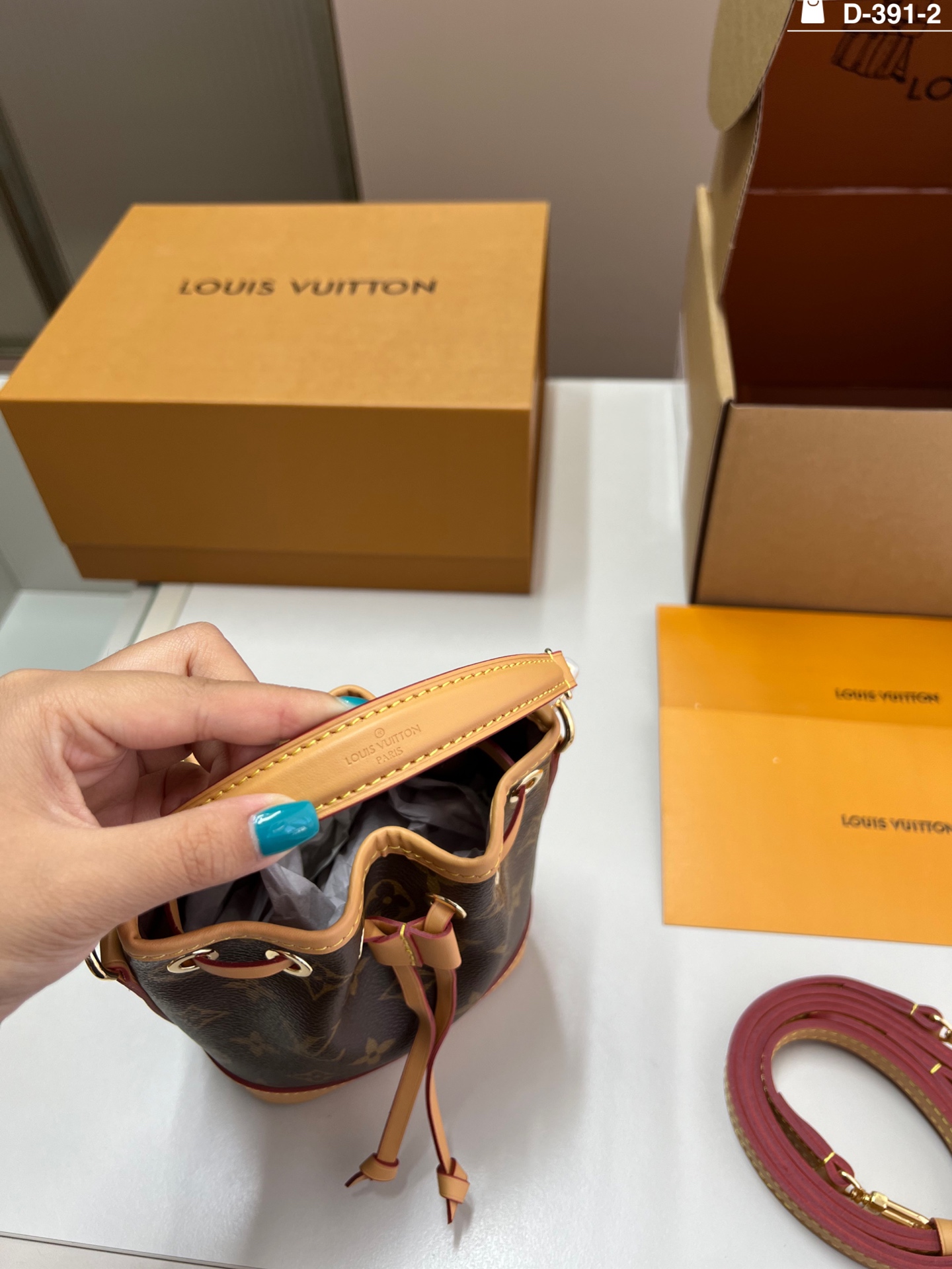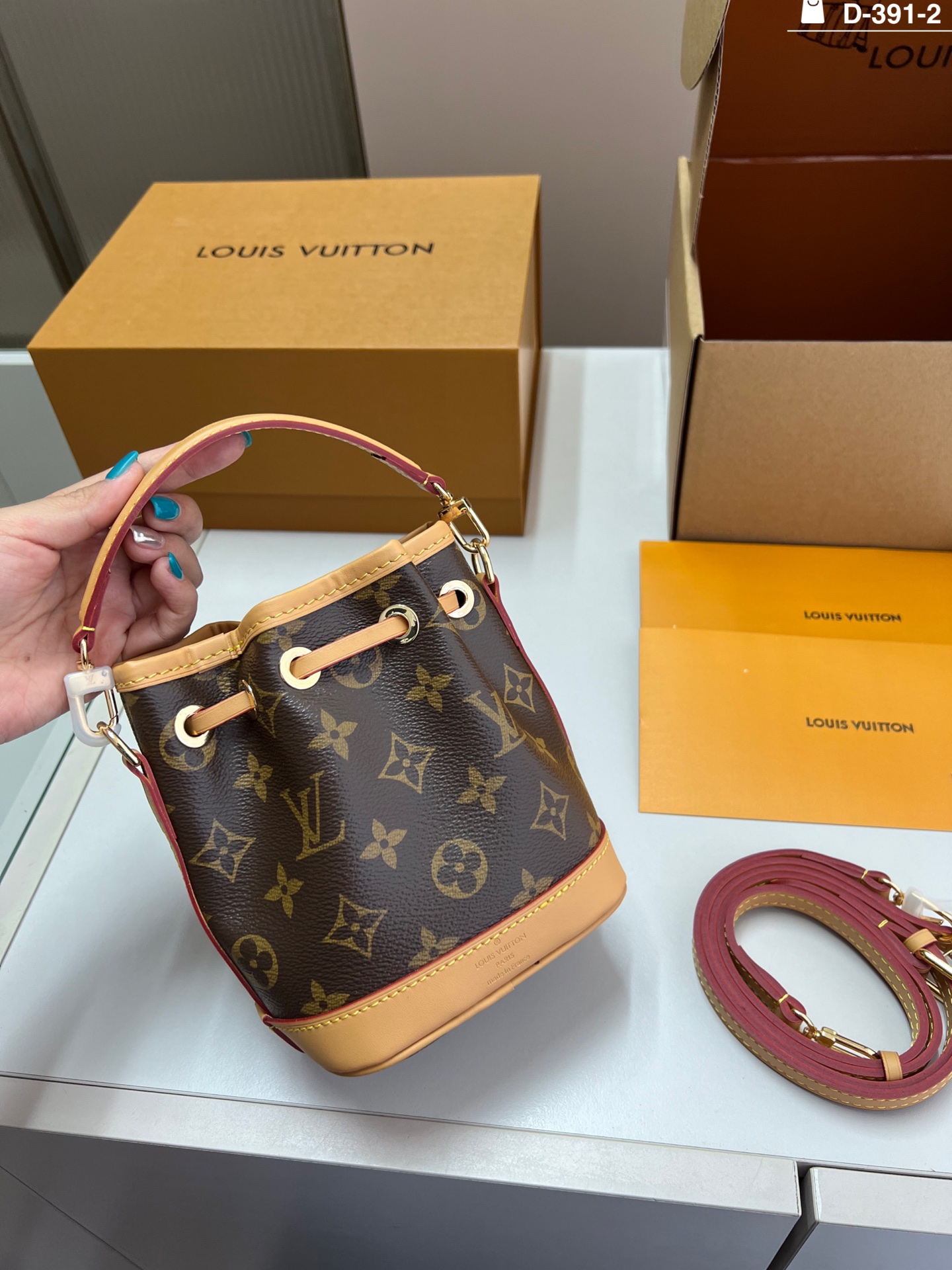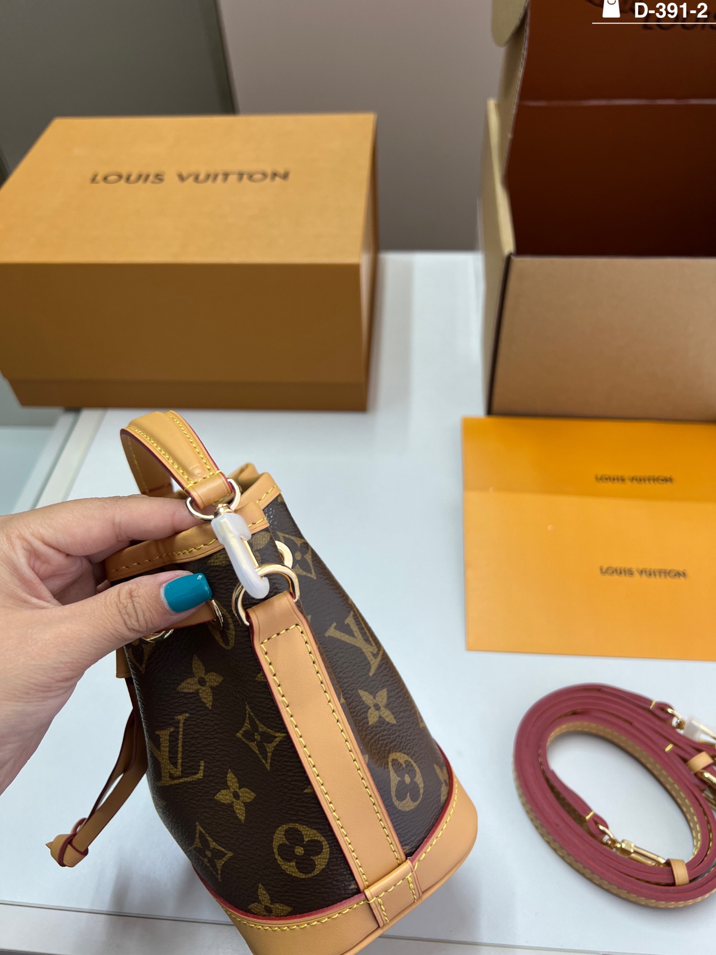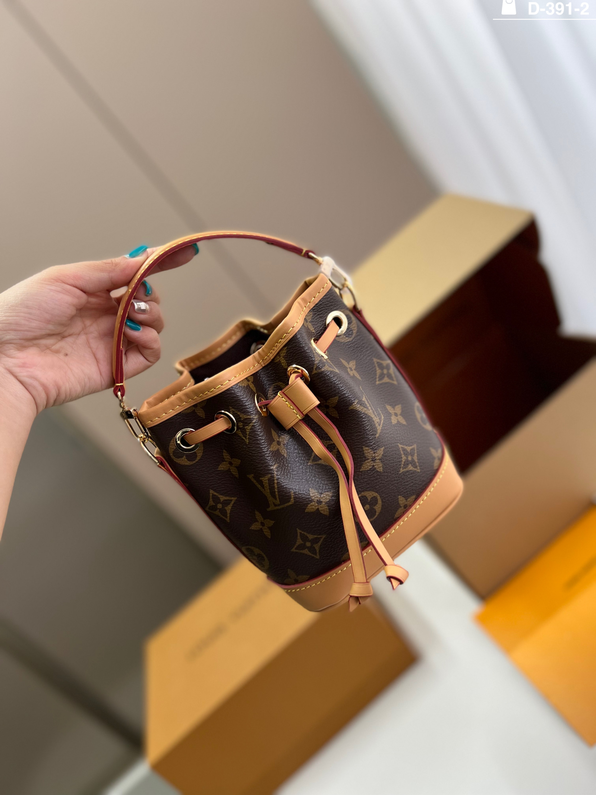 The Nano Noé is a miniature version of the iconic Noé bag, created in 1932. Crafted from Monogram canvas with trim in natural cowhide leather, this tiny Nano Noé combines heritage with modern functionality. Its removable handle and removable, adjustable strap offer multiple carry options, while it is spacious enough to hold essentials including keys, a card holder and a smartphone.